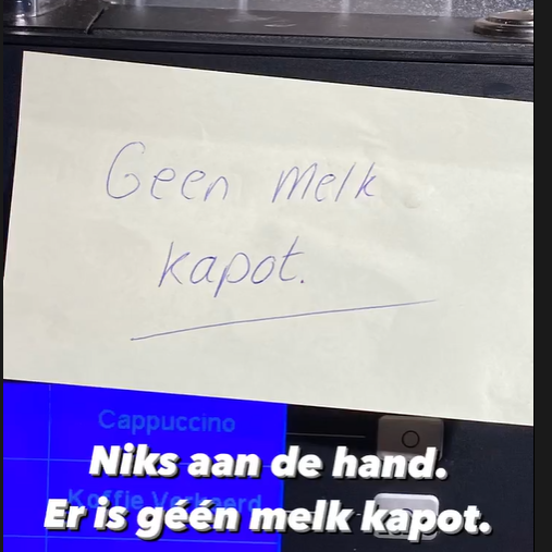 En als je het dan toch over interpunctie hebt: een komma doet wonderen, ook op dit briefje dat iemand met de beste bedoelingen op een koffieautomaat had geplakt. :-)